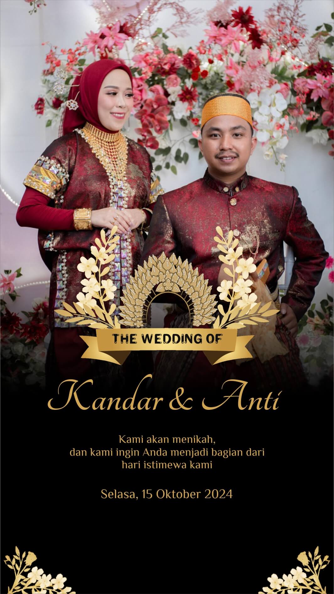“karena kehendak-Nya yang telah menyatukan kami berdua, yang akhirnya membawa kami pada ikatan suci yang di cintai-Nya kami melangsungkan acara lamaran pada tanggal 16 agustus 2024, tepat sehari sebelum perayaan kemerdekaan indonesia, kami merayakan kemerdekaan kami terlebih dahulu”
