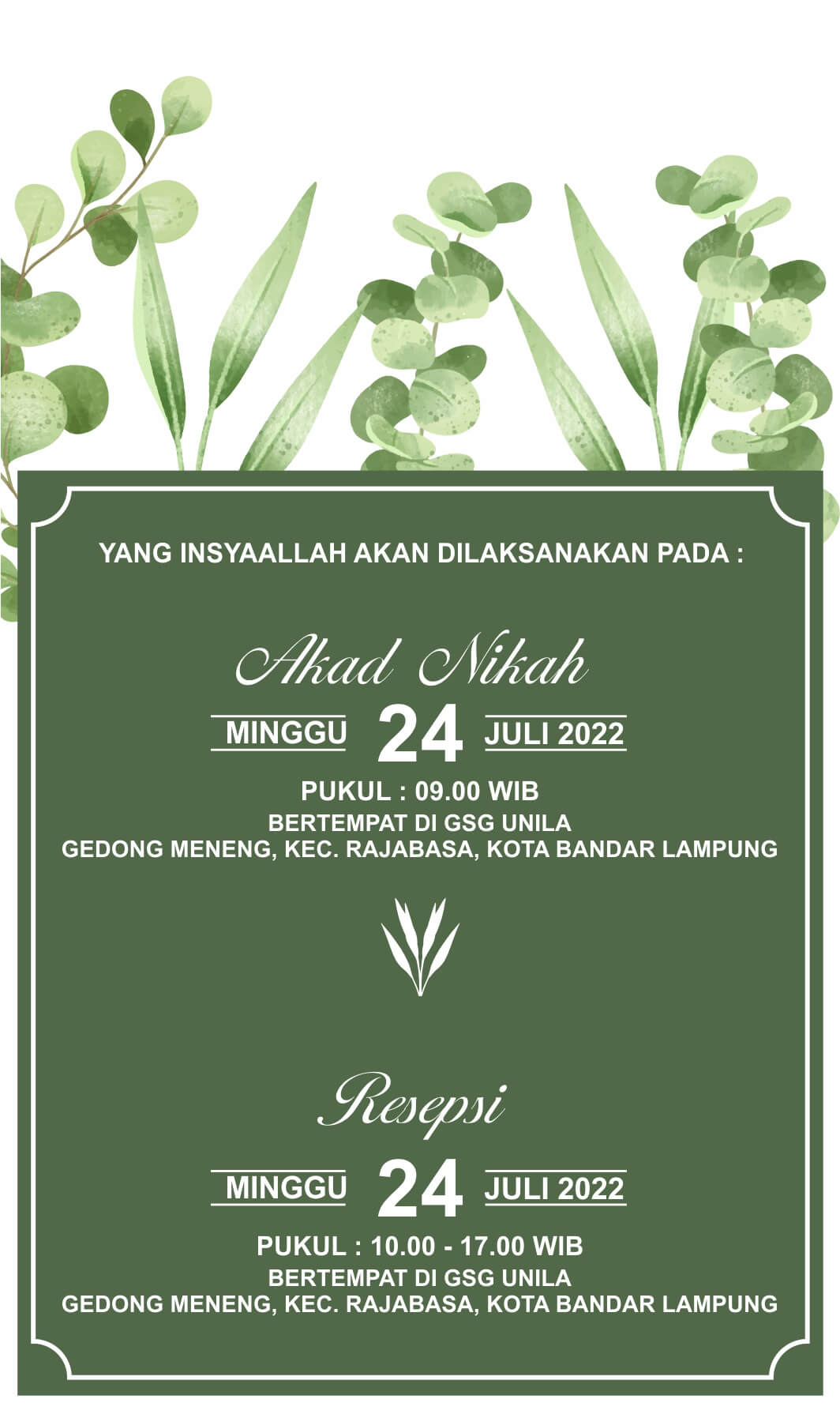 Dan hari hari yg dinantikan pun telah tiba kami akan melaksanakan Acara akad dan resepsi pada tanggal 05 Juli 2022.